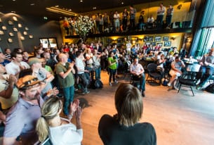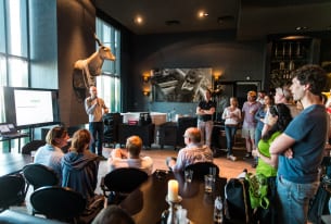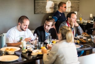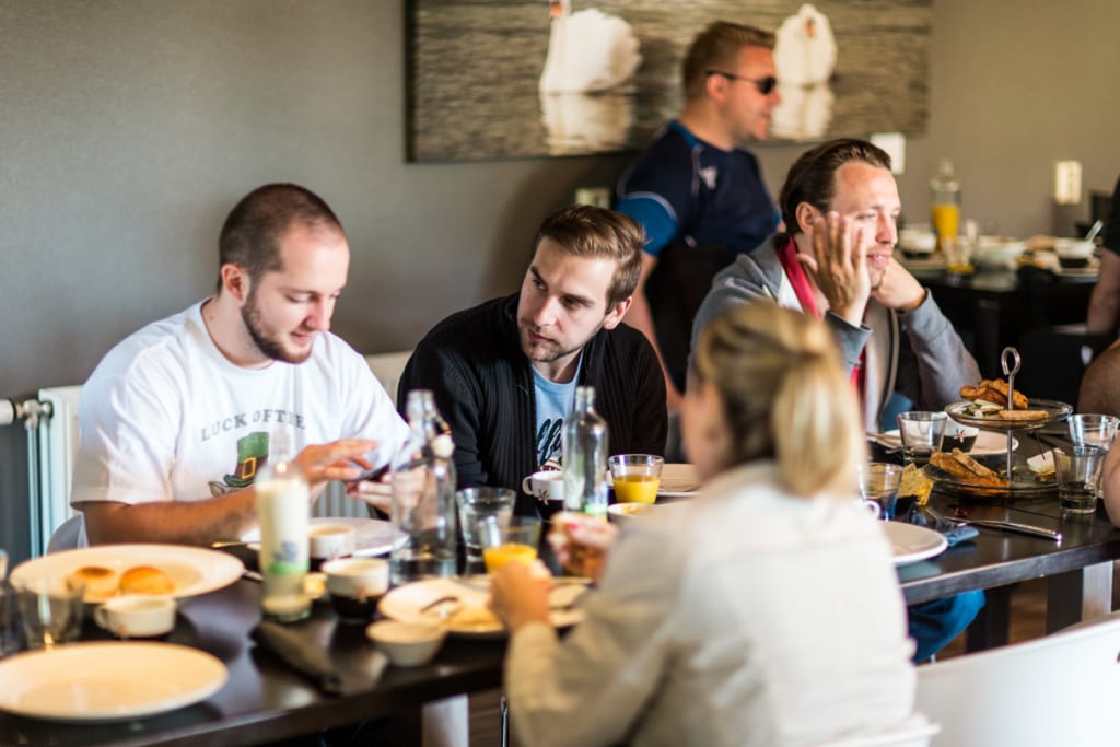 De bagage stond klaar op de kamers. Na het inchecken en opfrissen werd er gedineerd en gefeest in de brasserie van het hotel. Sinds de aankomst in Friesland waren de gasten al in 3 plaatsen geweest zonder een transfer per bus!