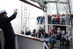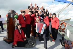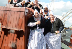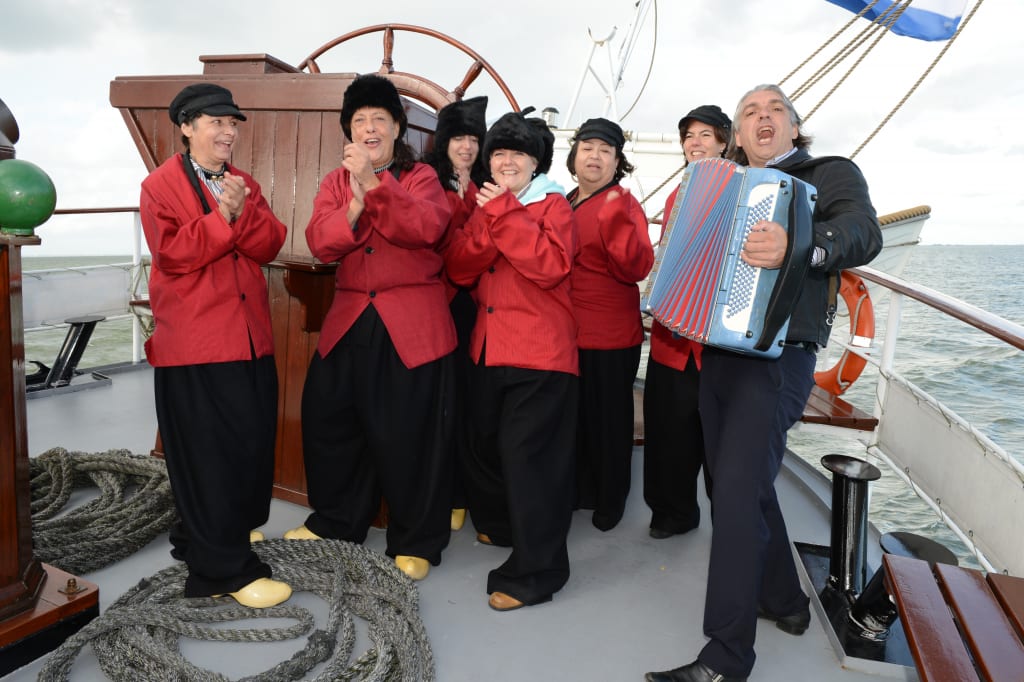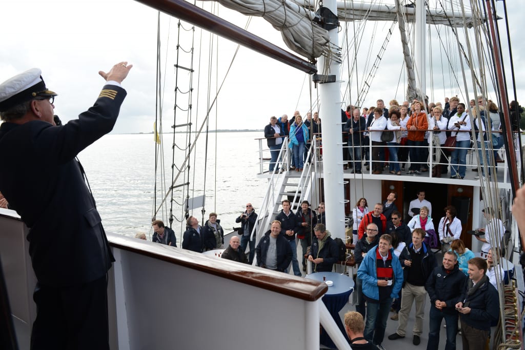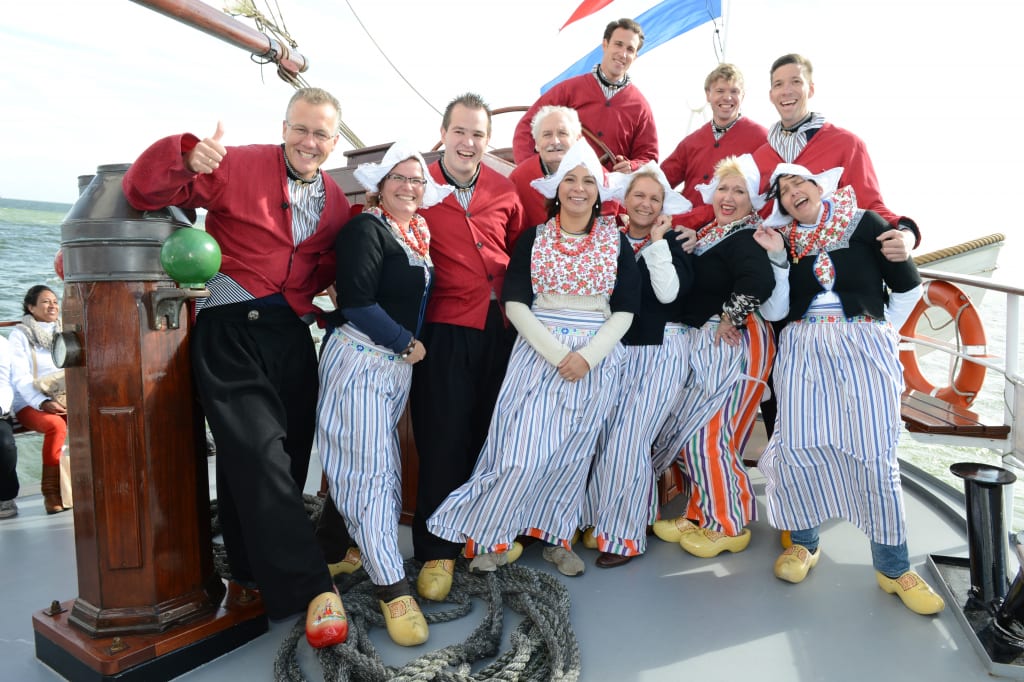 De zeiltocht was niet zomaar een zeiltocht. Alle gasten scheepten in aan boord van een grote zeilklipper. Aan boord was er alle ruimte om te helpen met het hijsen van de zeilen, besturen van het schip of juist met elkaar na te praten over de ochtend. Naast het zeilen was onze huisaccordeonist Jaap aanwezig om Nederlandse en Engelse zeeliederen te spelen. Ook kregen de gasten de mogelijkheid om op de foto in klederdracht te gaan. Ten slotte draaide DJ Issie feestmuziek en werd er naast geborreld en gebarbecued vooral gedanst! Kapitein Gerhard maakte het feest compleet door met zijn hele crew ter afsluiting een dans op te voeren.